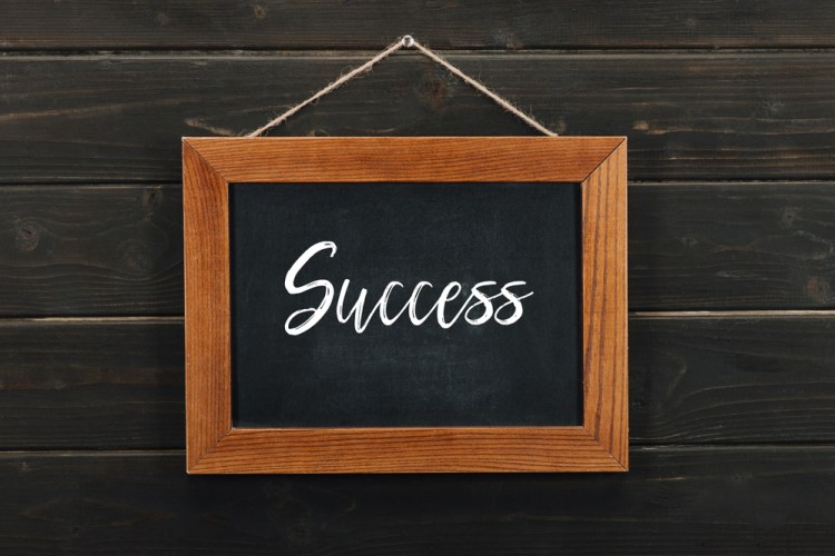 Placa com letras de sucesso na parede de madeira – br.depositphotos.com